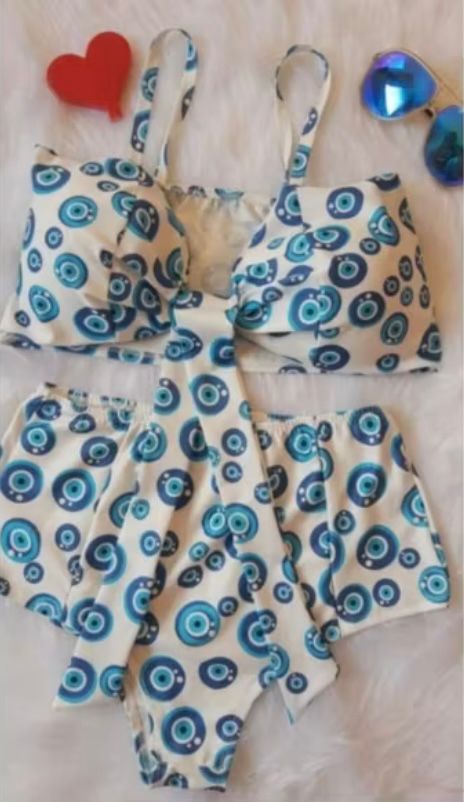 Este conjunto combina proteção e estilo em um design moderno e confortável. O top possui um nó frontal charmoso, oferecendo sustentação e um toque feminino, enquanto a calcinha de cintura alta (hot pant) modela o corpo com elegância.