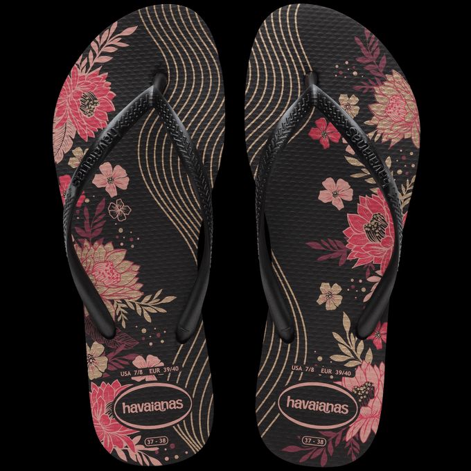 A Slim Organic é um dos chinelos mais atemporais da Havaianas. Com as tiras mais finas e solado mais leve, esse modelo tem estampa floral na sola e tiras com efeito metálico. Perfeita para um estilo romântico e sofisticado.