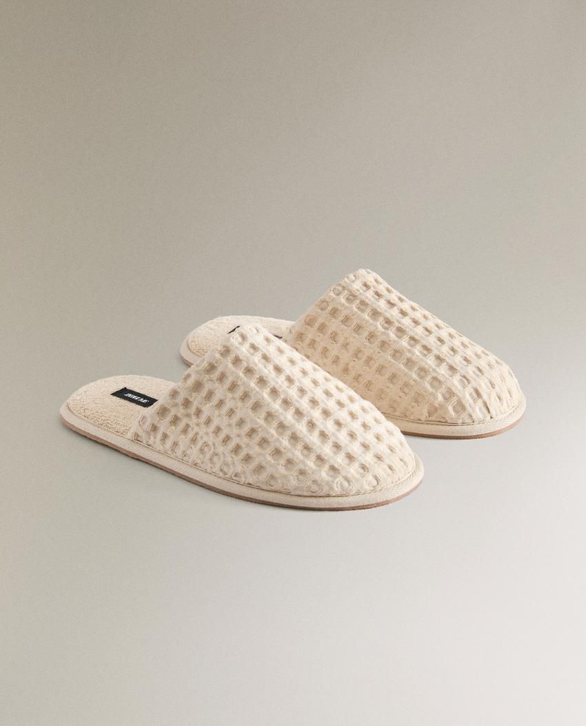 Chinelo tipo mules de estar em casa confeccionado com tecido de waffle. Tamanho 36 ,